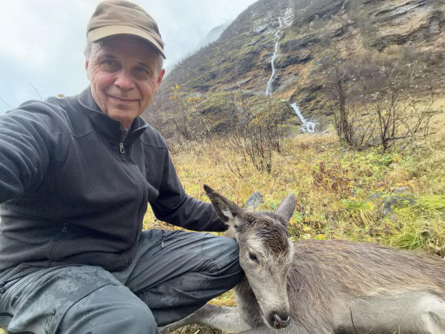 | Som i fjor og som i åra før så ser vi morlause kalvar i terrenga våre. Litt rart dette i og med at ingen skyt mora frå kalven men likevel dukkar det opp morlause kalvar når det lir på sesongen. Når dette er sagt så lukkast det Tormod å felle ein av desse no på onsdag. Kalven har nok vore morlaus ei stund då den kun var 23 kilo og det no så seint i sesongen, kan nemne at kalvane vi har skote i det siste har vore godt over 30 kilo |
