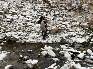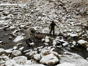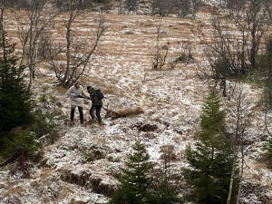 | Lars og Tormod tok turen til hhv. Berge og Bjåstad i dag. Då Lars gjekk oppover såg han eit einsleg dyr i Bukkali, dette forsvann for han så han gjekk ned til demningen og opp på Fonnteigsida, då såg han tre dyr på veg ned Bukkali, då var det berre ein ting å gjere, kome seg over elva att og forte seg fram til sengeposten. Det gjekk bra, då han vel var komen på sengeposten kom dei tre dyra gåande, desse var kolle, kalv og ein bukk. Lars lurte i starten litt på kva han skulle skyte av dyra men bestemte seg så for å ta bukken og den datt. | |