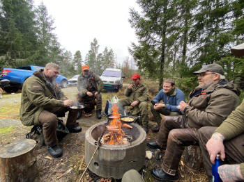 Det er alltid pause med kaffi og grilling mellom øktene |